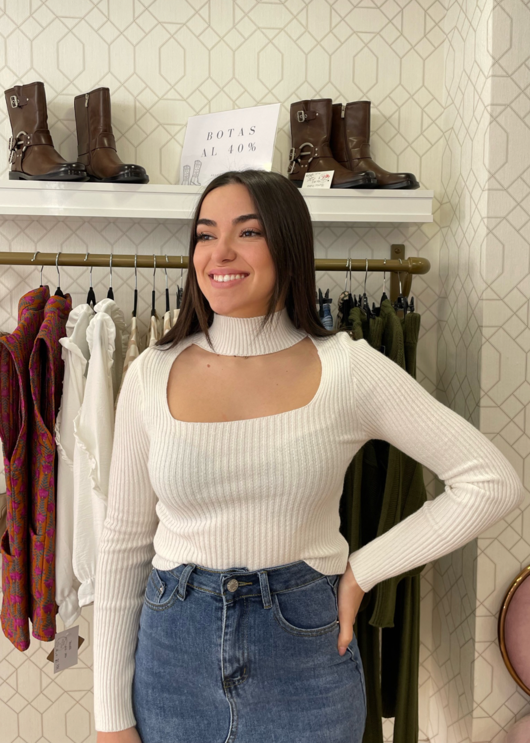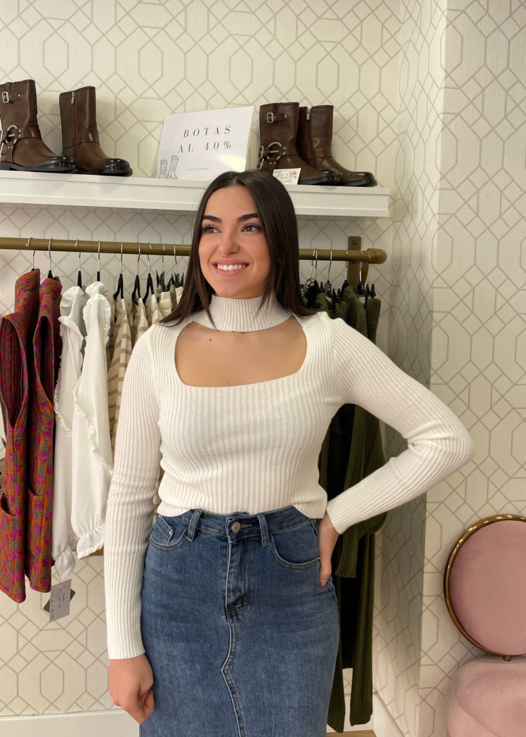 El corte del escote hace efecto de choker/gargantilla.