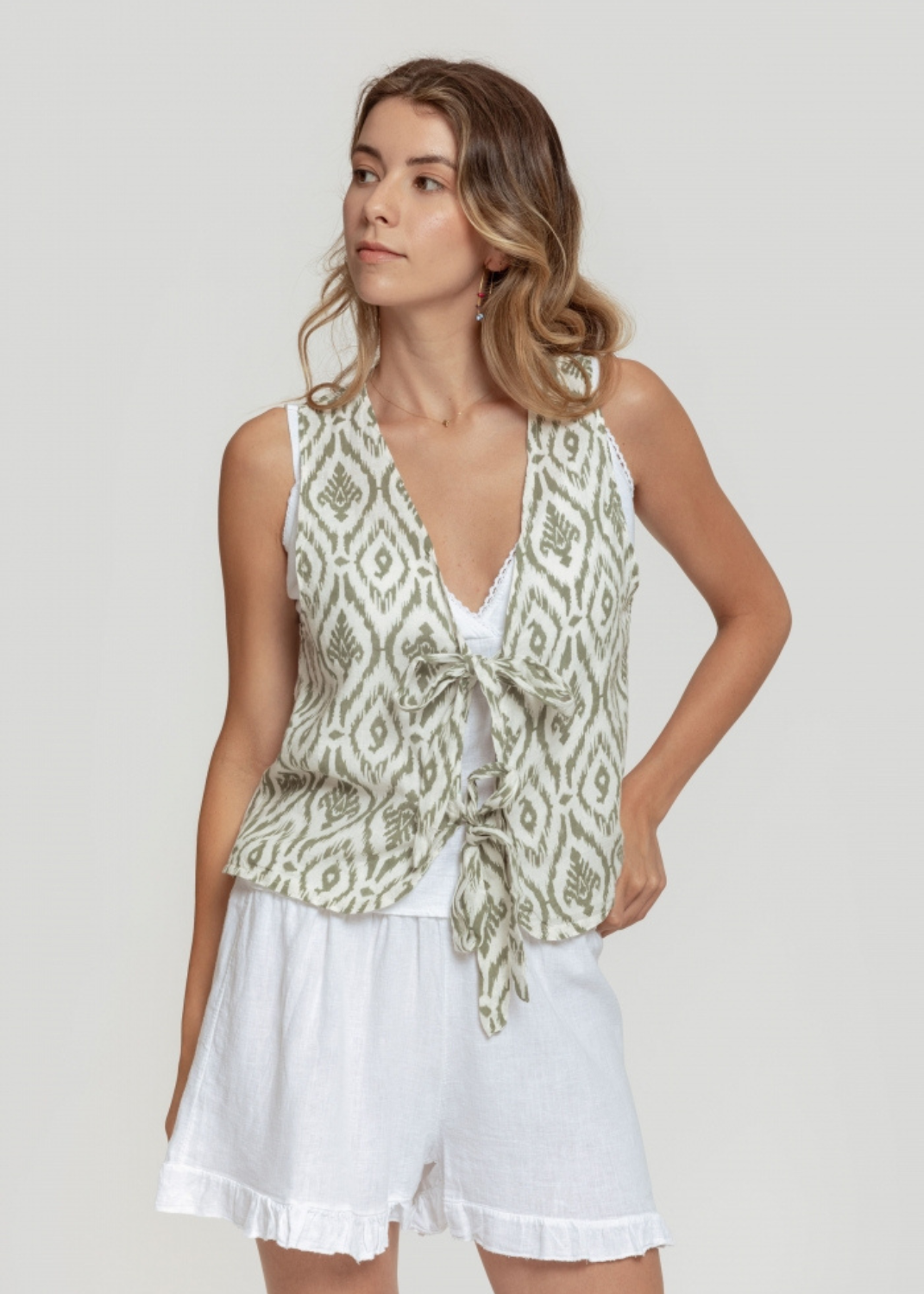 Tejido mezcla lino. Diseño corto. Tiro alto. Cintura elástica. Bajo volante. Talla modelo: S. Altura modelo 1,70 m.