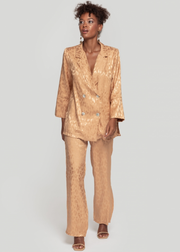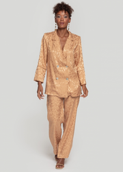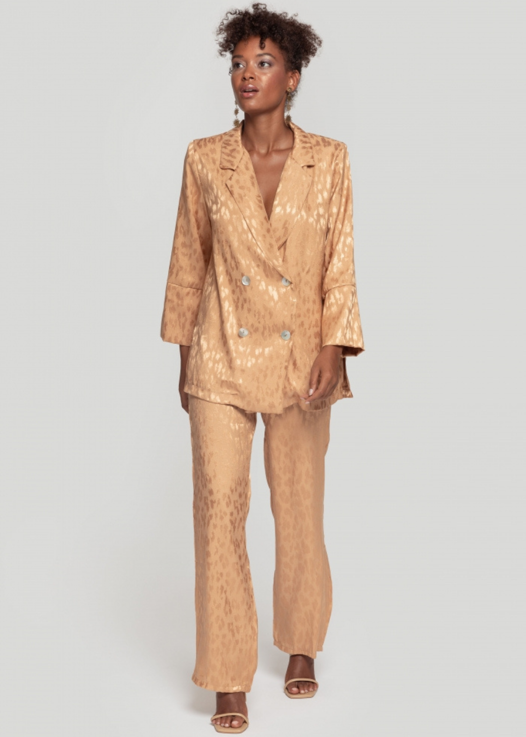 Traje de chaqueta compuesto por blazer y pantalón a juego. Chaqueta con diseño de doble abotonadura. Puedes ver el detalle del tejido maravilloso.
