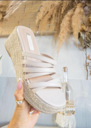 Cuñas esparteñas con un diseño original y diferentes a las típicas esparteñas. Esta compuesta de una gran variedad de tiras finas que encajan perfectamente al los dedos y empeine.