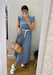 Vestido plisado. Caída abierta. Volantes en los hombros.