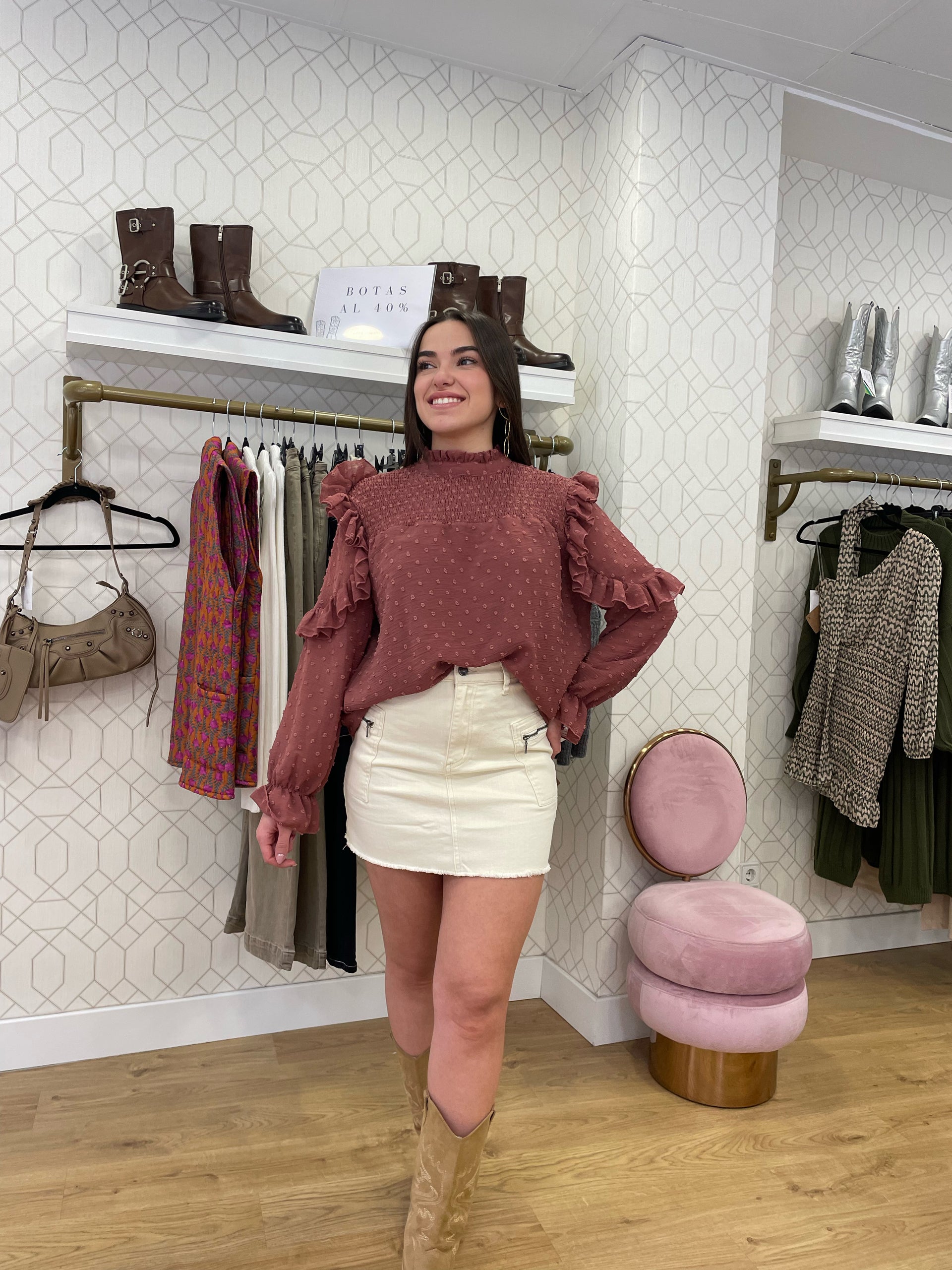 Nosotras la hemos combinado con nuestra "blusa petit", lo que le da ese toque coquette que está tan de moda.